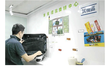 | Each Kar Kar Redemption Center has a "device testing area" and provides free WIFI, power supply, plugs, and tools for customers to test the products instantly. There is also a "product repackaging self-service area", allowing customers to repack the products after testing. There are also displays of gift samples in the redemption center for customers' reference and trial |